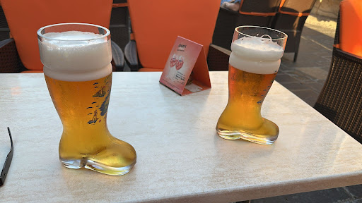 Turist trap - the waiter was polite , but trapped us into much larger amounts than we wanted. My wife and sister ordered a milkshake in a medium size . And we ordered a small milkshake for our child 3 years. The waiter acknowledged and signaled a small size pointing to our daughter. But apparently the waiter (who was obviously under control of a man and woman inside) decided that we should have oversized drinks. My daughter of 3 was given a glass maybe 75 cl ( XL in my world) My wife and sister was given approximately 1.5 liters (which they called medium) To top it the milkshakes were mostly milk (I quess they make it oversized by adding more milk but keep fruit and ice the same as a regular) My self and my brother in law was given ~2 liter beers. He obviously thought that this was funny but we didn't when we got the bill 80euros - we tried to argue and get them to acknowledge that the cheated, but they didn't mind arguing ind the street.. and we didn't what to ruin the rest of our vacation...