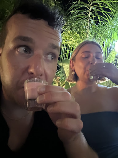 Genuinely cannot complain. They seated us in a prominent sofa in the eyeline of new guests, which felt like a validation of our long thought out outfit choices giving me a temporary boost of confidence. Then, with a knowing nod to the extensive gyros eaten throughout the trip they gave us a shot of gaviscon (see photo). I rounded the beautiful experience off with a well crafted strawberry daiquiri (also pictured) as My Humps by Black Eyed Peas played over the sound system. Tell me we haven't all dreamed of a sequence of events unfolding like this in our lives from time to time. Get you love drunk off my lady...