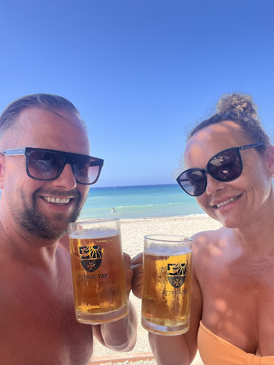Read moreWe have just come back from spending a lovely day down at sunset beach bar.we were greeted with a warm welcome and a lovely smile from one of the waitresses who informed us that the sun loungers were free if you brought food and drink.we were planning to do that so the beds were an added bonus,I had a lovely pina colada to get things going.we were at the pool side at the back which was lovely and quiet for a while,kids being kids in a very small area made us get up and move to right on the front on the comfy loungers. We went for a beer at lunch to accompany the HUGE club sandwich that was more than enough for 2 people(it was for my wife)she ate half because it was so big.i opted for the chicken Caesar salad and I can say Iv never in 44 years seen a salad that size!!it was incredible so fresh,chicken perfect,croutons the sauce was lovely too.i couldn’t get anywhere near finishing it.we had a couple more beers in the afternoon and paid up 60€ for all that was an absolute bargain.we will definitely be back the service was great and the music all day was so good(I’m not sure if it was from the beach bar or surrounding areas but it was brilliant)don’t hesitate to get down there if you can because you won’t be...