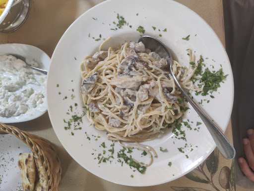 This place offers excellent food for very reasonable prices, and the service was very good too. The atmosphere in the restaurant is very nice despite being near a road and we had a lovely experience here. The pittas we had were all fresh and tasty and the chips were fresh too. The spaghetti carbonara was rich and flavourful so I would also recommend this dish. Unfortunately they were out of the stuffed peppers when we visited but these looked great so we were eager to try them. Overall this is a great local restaurant with great food and...