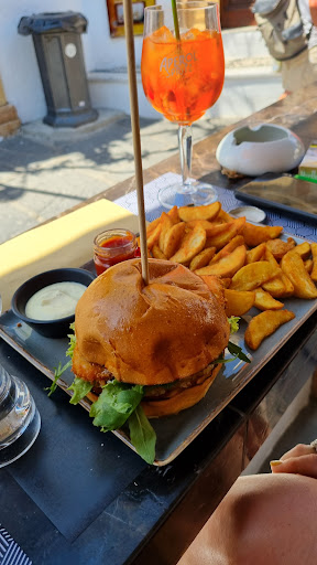The waitress was friendly and prompt. The bar staff were also friendly. We had 2 Aperol Spritz which were delicious but cost 12€ each! The average price across Rhodes, based on places we'd been to, was around 8€ for an Aperol Spritz. So 12€ is a bit expensive, but you tend to find that in "fancier" bars. The food (Diavola Pizza and a Chicken Burger) was very good. The cheese on the pizza was delicious (wish I'd asked what it was) and tasted nothing like a pizza in the UK. We really enjoyed our food and it was reasonably priced at 13€ for the pizza and 14€ for the Chicken burger.