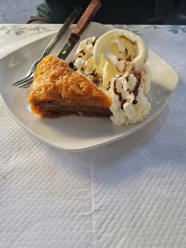 Read moreStopped here in Old Town Rhodes for the day on a cruise port stop. There are so many choices of restaurants in this area, and every restaurant entrance comes with someone trying to convince you to have a seat. It can be a little overwhelming, honestly. We weren't sure we were quite ready to sit down, but after walking by twice and talking to Aris with his friendly welcoming personality, we decided this was the place for us. Zizi is located just off the main shopping street. When you see the HUGE tree at the cross street, it's just up to your left. Cute traditional Greek atmosphere, tucked nicely away so you can still people watch but aren't sitting on top of your neighbor. Aris let us have our choice of tables, and we selected the cozy corner booth surrounded by potted olive trees and hanging flower baskets. We shared a bottle of Prosecco, saganaki (oooh so delicious), the mixed meat gyros platter and a Greek appetizer sampler platter. Far too much food for the 2 of us, but it was exactly what we were looking for and at a pretty decent price of 57 euros for everything we had. At the end Aris wanted a photo together and hugged us goodbye like we were old friends. We will have fond memories of this place and hope we have the good fortune to come back and see...