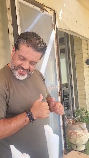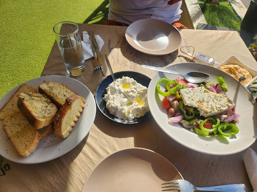 The food was delicious - I forgot to thank the cook. Amazing potatoes. I was full but couldn't leave them. Tzatziki was so flavorful, the best we had in Greece. Our hosts made us feel so welcome. We celebrated my birthday with delicious melon - and a candle☺️. We stopped for lunch and made a friend. This is a must stop on your travels...