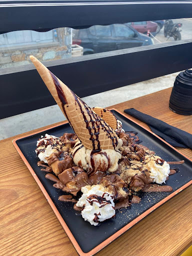 Read moreExcellent food! We tried pancakes with biscuit and praline and waffles! The croissants with lettuce, cheese and ham were spot on and super tasty! The prices were very good for a greek island. 2,5 euros for the croissant and 2 euros for the excellent coffee were definitely the best value for money! We also ate the hot club sandwich which was also cheap at 5,5 euros and a very complete and tasty...