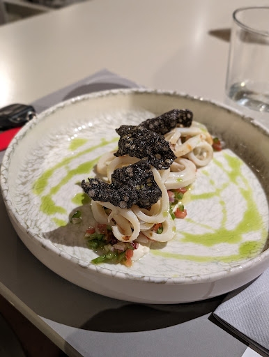 Read moreA great place with superb view. I just had diner here, I was welcomed by lovely staff who were helpful in chosing my dish amongst the menu. I got the grilled calamari which wasn't the best I had, the squid was a bit chewy and overall not very interesting, but the sauce and salad was very well balanced. Following the waiter's recommendations, i chose as main the paccheri with veal cheek and cheese espuma, this was truly delicious. The pasta were cooked perfectly and the meat and sauce delicious. I genuinely recommend stopping by if you are looking for a nice...