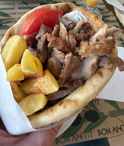 Das Personal ist sehr nett. Es hat uns gleich angeboten die großen Scheiben zum Meer zu zu machen. Wir liebten jedoch den direkten Meerblick bei offenem Fenster. Hier gibt es eine kleine Speisekarte mit griechischen Speisen. Auffallend war, das hier auch etliche Einheimische gegessen, bzw. Speisen abgeholt haben. Die Preise sind für diese Lage sehr günstig. Die Speisen waren nach ca 10 Minuten schon da und haben sehr gut geschmeckt. Es waren riesige Portionen. Ich hatte Gyros mit Pommes, etwas Salat und Pita. Meine Frau hatte Lamm Kotelett. Sie bekam 3 Stück Lamm, bzw. Ziegen Kotelett, alles war sehr gut. Das Pita Brot war ebenfalls außergewöhnlich gut. Es war hier alles nicht ganz so vornehm wie in anderen Tavernen an der Promenade aber das Personal war nett und die Speisen waren sehr Lecker und super günstig und alles war sauber. 24,50 € für 2 große Getränke, 2 sehr leckere und üppige Hauptspeisen mit unmittelbarem und tollem Meerblick ist...