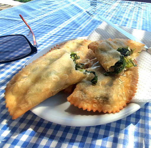 Second visit reaffirms this as the place of greek pace in the village. There will be one dish of the day...today it was moussaka...a sublime "eton mess" fresh put of the oven...how did i manage to get this and their monumental greek salad in? Go there and find out. Hospitality has become a word of affliction for those of us who toil(ed) under its weight. But it's a wind beneath the wings of this place, long before Bette Middler warbler the words. The host of this remote outpost welcomed me, like I'd been there 10 times before. No fanfare, just a familiar greeting. I could have asked for a menu, but instead I did the "when Harry met Sally", and asked for these tasty little pockets of local greens I'd seen growing as I walked in, then being devoured by the owner and his mates as I entered. They were everything I hoped to top it off, unlike almost every taverna in the area, paying a humble €3 by card was no more effort than a friendly farewell. Hospo is all the better for...