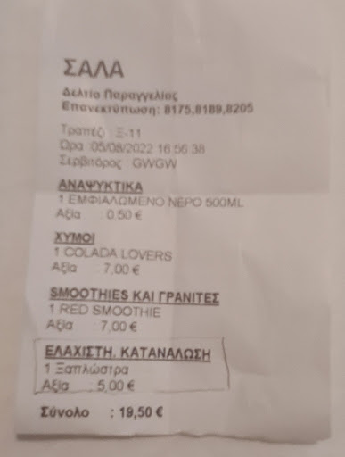 About 30mins later I decided to leave. I went to pay, and i was told by a different waitress the total sum to pay, (no bill was provided, I'm certain it's illegal to not provide a bill/receipt in Greece...hmm again) anyway, I wanted to see the bill to check that since I had moved around from table to sunbed, that the bill included everything. Upon checking the bill I noticed a 5 euro fee for the Sun bed. I questioned why this was charged since my minimum spend was over 5 euro, was it a mistake by them?. They proceeded to tell me that the sunbeds was an extra 5 euro. Now I understood very clearly what the initial waitress said. Even the receipt itself said "minimum spend sunbeds 5 euro" (yes i read write and fully comprehend Greek). So why was I being charged another 5 euro. Apparently I misunderstood is what they tried to tell me. Yeah nah, i did not misunderstand. Perhaps your staff is not well informed to advise the correct detail being that all sunbeds cost 5 euro on top of the 5 euro minimum spend. The waitress shouldn't be telling people it's a "5 euro minimum spend" these were her exact words!