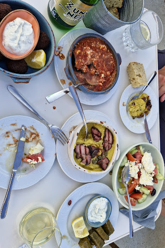 Read moreWe had to try this place because it was so close to where we were staying and it had such great reviews. Unfortunately disappointing. Taramasalata was extremely bitter and grainy as if it was split, although it was served with nice fresh bread which was the best part of the meal. The smoked fish with potatoes and chickpeas was okay - also pretty bitter tasting. The ‘pork bites’ described on the menu to be accompanied by feta and capsicum came to the table looking like a pork curry with hardly any capsicum or feta. The prawns were boring, not much flavour/lots of the same thing. I ordered an aperol spritz which was so bitter and horrible that I couldn’t drink it, maybe too much aperol or a bad wine used in making it, I wasn’t sure but overall this was very disappointing and more expensive than eating at the Greek tavernas which we...