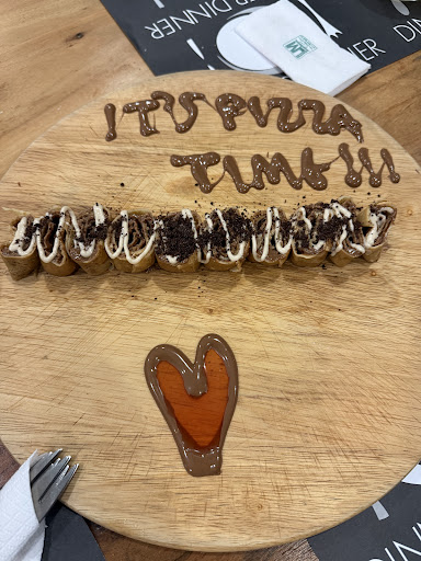 Read moreThe pizzas and Caesars salad are very tasty. There is an English menu available, the waitress speaks English well. The portions are big. After a plenty meal we were served a chocolate crepe on the house. The chief himself said goodbye personally when we left. Thank you for an excellent dinner! Ten of ten stars. There is a huge free parking lot a hundred...