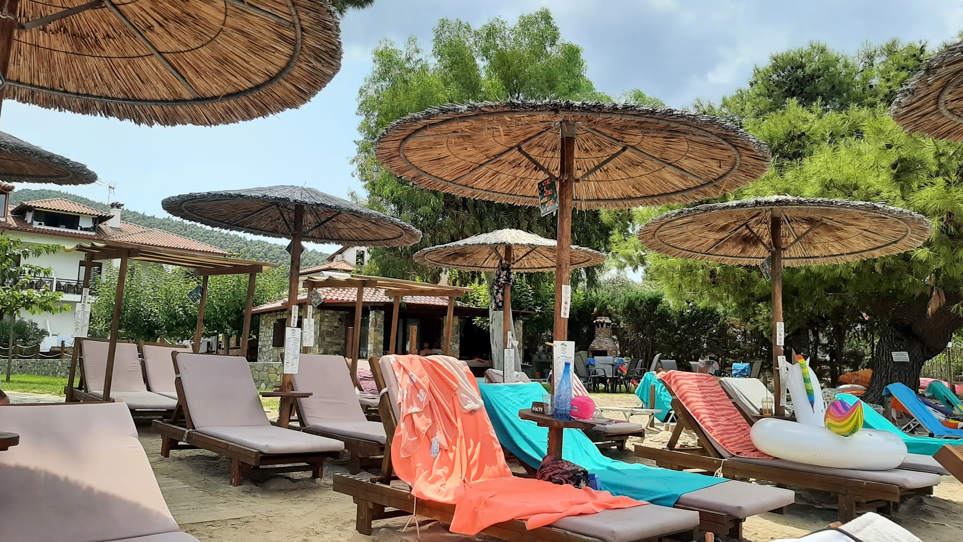 Read moreΔύο άτομα, μπροστά 1η σειρά 15€, καφέδες από 2,50 μέχρι 6€. Τίμια πράγματα για καλοκαίρι 2024. Ξύλινη ξαπλώστρα με παχύ στρώμα και ψάθα ομπρέλα. Επιλογή για σωστή σκιά από πεύκα με σιδερένια ξαπλώστρα ή τραπεζάκι. Η παραλία καθαρή και η θάλασσα όπως τη θέλεις για την οικογένειά με μικρά παιδιά: ρηχή, καταπράσινη και καθαρή! Φαγητό δεν αξιολογώ γιατί δεν έφαγα αλλά είδα ότι έχει κάτι απλό και παγωτό που ενδιαφέρει τα παιδιά. Έχει καταλύματα μπροστά στο κύμα αλλά αυτό είναι...