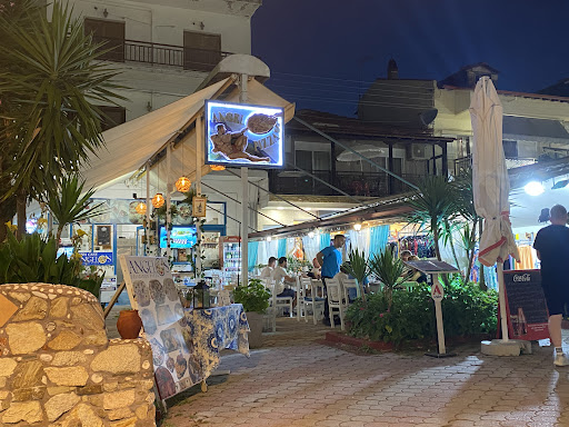 Location is in a town square and i think it is center of Sarti. There is lots of stuff going on there with bunch of contents for tourists like caffes, souvenier shops and some ice cream shops. Restorant stands out from all that with its beautiful national color, white and blue, terace or some sort of balcony, i really dont know other word in english, srry.