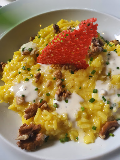 Patata bravas were exquisite! Tomato and courgette beignets on point. Pork steak and ribeye perfect. The Risotto you don't want to eat it, its so beautiful, and it tasted even better!