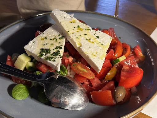 The white tarama salad was the best tarama we both had by a long shot. It incorporated all the ingredients in a whipped like texture and felt like eating clouds. The greek salad had the tastiest tomatoes we had in a while and the feta on top was perfectly salty and very creamy.