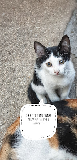 When we were leaving I was kind of shocked to see him again next to the fence of that yard, holding a sling shot and peeking inside. I can't be sure what he did with that sling shot, and it wasn't my business to interfere, but I may question what kind of grown up person uses children's sling shots against kittens.