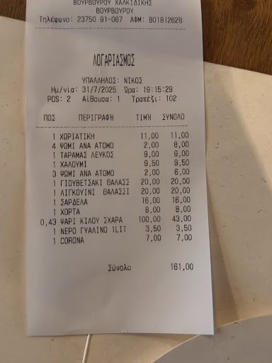 Read moreMe and my family were in this 'fine dining restaurant'. Our experience - terrible ! The hostess seated us at the table and left. And here we go waiting.......waiting....waiting, after 15 minutes the hostess brought us some bread , after 10 more minutes we asked her can we have menus and after 15 more mins they assigned waitress for the table ( in total we waited for 40 minutes for menus ) . Voila! BUT, after the menus, we waited 20 minutes for the waitress to get our order. And here we go again.... at the end of the order, we asked for an ashtray 3 times . FINALLY, we were lucky ! The service is without order, they brought a dish to the table whenever was ready ( My husband was on his salad and my father git his second course 😉 , not nice at all !) I ordered octopus, which was over grilled. It tasted like charcoal. We asked for a wine recommendation - we didn't get one ( why this place has so fancy raiting ???? ) We had just paid our bill, but still finishing off the rest of our wine, when the waitress started nudging us, to clear things from the table and literally pulled the paper mat out from under my mom's arms. Which was super rude! When I told her that it was rude and we were still at the table, she started to explain how this is tavern, and that's how it was done in Greece. Until the end, we didn't know who our table waiter/waitress was. The food ( without the octopus) was OK, but nothing special, and it was overpriced.