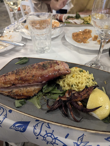 This place is terrible. We will never go back. Although we made a reservation in advance, when we arrived it turned out that they had not recorded our reservation at all and we had to wait 20 minutes to be seated, even though there were free tables. Then we waited 20 minutes to order and finally after we ordered the food came after another 20 minutes. They don't offer complimentary water, bread and dessert like most typical taverns. The food was terrible, 2 octopus tentacles for 18€, the tirokafteri salad was terrible, they put old cucumbers on the greek salad, the bread arrives after you have eaten your meal and the bread itself was not good either, the only good thing was the grilled prawns. The service is under all kinds of criticism, the head waiter does not understand English well, he comes to take your order and never appears again, there is no one to take your empty plates, no one to change your ashtray, no one to ask you if everything is okay. It was my birthday, I will not go back again I DO NOT RECOMMEND! Also there’s no greek music, this is everything...