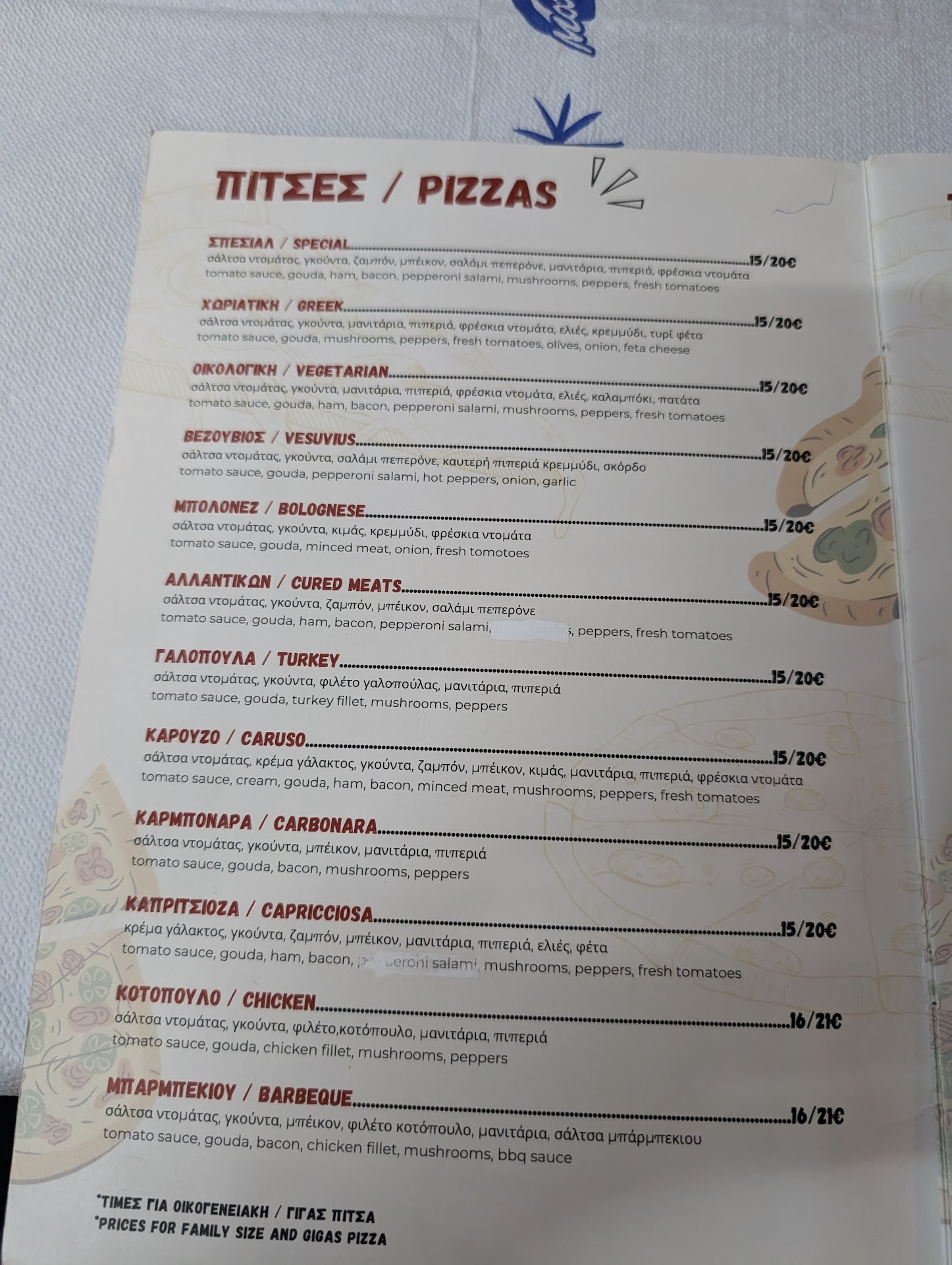 Later edit (august 2024): Higher prices, as to be expected, everything is more expensive. Pizzas as big as before, but the cheese on pizza is better now. Feta in the oven is delicious (a bigger size would have been great). After order, pizza arrived 20...