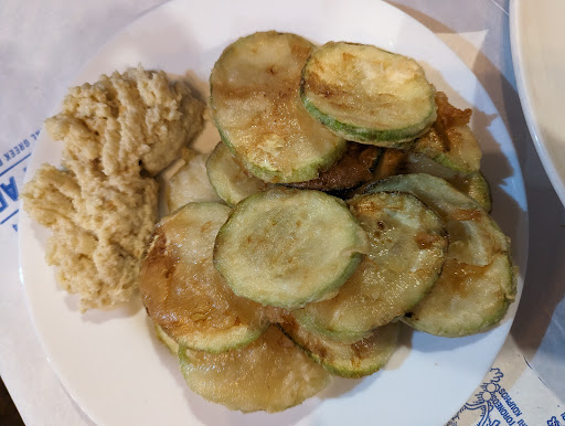 The fried zucchini was not my cup of tea, but the fried feta with sesame was delicious. The grilled octopus was ok, the mixed grill was a bit small but super delicious and the rice with mussels was ok as well.