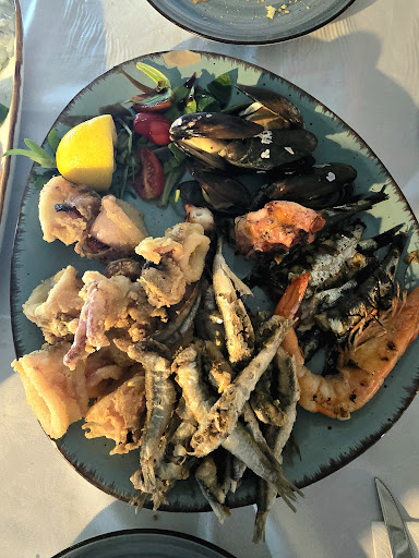 We had dinner at Kotsaris Restaurant in Sarti and overall the experience was very positive. The portions are really generous, and the appetizers – especially the dips and the grilled eggplant – were absolutely delicious. We also tried the seafood platter: while the flavors were nice, some of the small fish had noticeable bones and a few of the mussels had a bit of sand, which slightly took away from the perfection. Still, the food in general was tasty and satisfying.