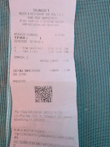 Read moreVery nice beach bar, the music is not loud, the service is quick. There's a minimum consumption per a set of an umbrella and 2 sun loungers, but it was 25eu I think, which is easy to reach if you order something more than just a coffee (the frappe was 4.5eu). There are some rocks at the entrance of the sea, but after that it's only sand and doesn't get suddenly too deep, as...