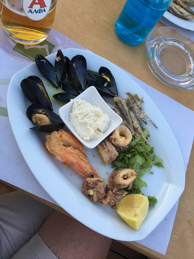 Read moreLooked like a lovely place by the beach really nice view. Walked it and waiters not friendly. Don’t even have butter to spread on bread. No table water. Every restaurant I been to in Greece brought us table water. Waving to get attention of the waiters and no joy and had to stand up to get their attention. We did not even finish starters and they brought main courses out. Some people had food while others waited. Waiters not taking away empty plates after starters and the main course so the table was cluttered no place to put the main course. We finished our food and the plates remained on our tables for at least about minimum 30 min and we had to ask to get the table cleared. Not even asked how the food was. To the food. It was not bad. Pork and chicken Souvlaki was tasty but Lukewarm. Moussaka same was tasty but lukewarm. Mixed sea food was ok the prawns were overcooked but the whitebait and the calamari was nice. Did not even have mastiha. Tables really close together so felt packed like sardines. Overall we came here expecting nice time and without nice welcome or a decent service affected our mood celebrating our...
