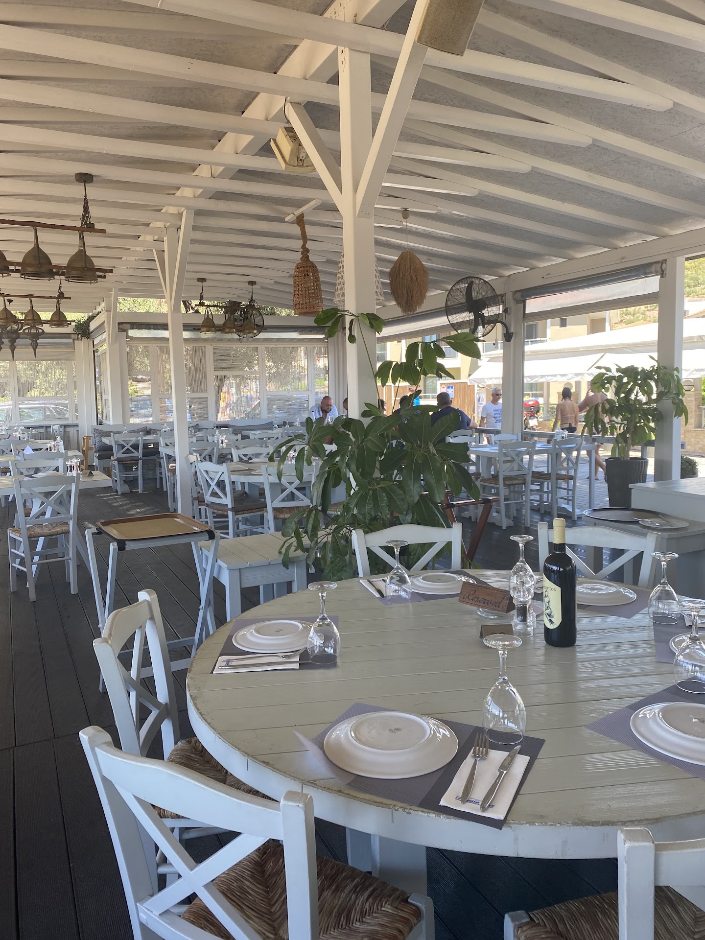 Let me start by saying the food was very good. They must have a great chef! The fried squid and the roasted octopus were exquisite! The atmosphere is nice, soft, spacey and the see side view is very nice. The price is reasonable for the quality of the food and wine! Glass half empty, is the service. For s premium Greek restaurant, the waiters are not very friendly. No greetings at sitting or paying, a but of a grumpy face, and trust me I am a nice smiling guy. For someone that is a coffee lover, to spill the coffee when serving is very unpleasant. Lastly, they never offered me the greek delight of sweets before leaving. I was eating alone, and have spend a descent amount for 1 person. Yet the table next to me of 4 greeks had been offered the sweets. Either not inviting for foreigners or a new type of „greek hospitality and service”. To be to the point, 90% of the time the greek hospitality is amazing, so it makes it more disappointing when the food is 9/10 but the hospitality is 4/10. Very unusual for Greece. Hope they learn fast and improve...