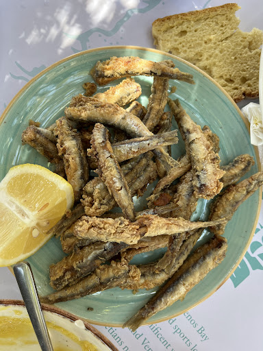 My name is Peter Galifianakis. I live in the USA ! I was born on this rich & wonderful island of Crete and I am presently here again on my annual extended vacation! As a former restauranteur I have enjoyed its simple earthy diversity of its cuisine in every province. This week I have been in the Sitia area on the far east end of the island and have eaten in at least a dozen restaurants in and around the city and I can honestly say that they have been excellent in their very traditional presentation.. Today however it was different! I was taken to a lovely wind surfing beach area called Kouremenos.. It is close to the ancient village of Palekastro... Where we ate at a simply beautiful restaurant under the Palm trees named GRANDES ! As in the other restaurants I Ordered my usual simple fare of Smelts, grilled Kalamari, Horta and potatoes! I can honestly rate most of the places I eat in Crete an 8 to 10 … (yes most are that good )… but this simple menu at GRANDES was off the charts…simply stated it was heavenly, absolutely divine! I’m still mystified how this very simple fare ...so common every where here in Crete …be so delightfully different in this wonderful beachside restaurant at Kouremenos Beach Sitia...