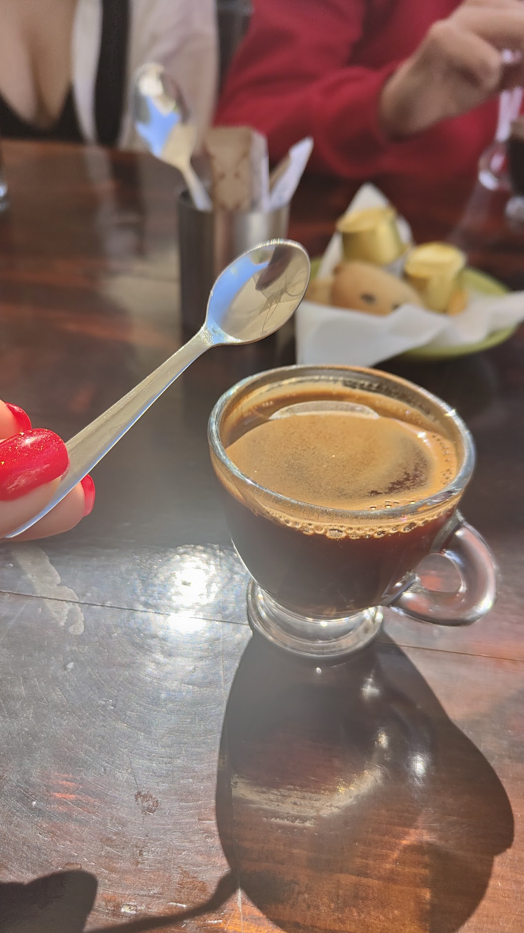 Non-customers pay €2 to use the restroom. There are two restrooms available, although one door wouldn't close. The staff was very unfriendly to tourists and people who didn't speak Greek. One of us did speak Greek, so they were friendly to them. When they briefly left the table and the drinks arrived, all of us said thank you in Greek, but the staff treated us like air. The drinks themselves were tasty, but that was the...