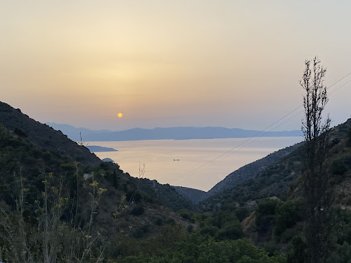 I fell in love with this place. There is no better restaurant / tavern in eastern Crete - the food is always fresh and delicious, prices remain low, the view is astonishing, and the owner is the best. I have visited this tavern several times on my first trip to Crete a few years back, and we were always happy with my wife to do the 30 min drive from Sitia to eat there and watch the sunset. When I was lucky enough to visit the eastern part of the island once again this year, I simply stayed within the Myrsini village, so I could enjoy a great meal with my extended family each evening. And so we did, almost each day for a week and a half, except for the few occasions when we cooked by ourselves or tried some other restaurants on the way home. I recommend the appetizers especially - order a few options from the menu and share it with your companions to fully appreciate the variety and quality of the Crete food. I need to mention the view - wow. Beautiful sunsets, sea, mountains; in the night - lights of Agios Nicolaos far on the horizon and hundreds stars above. Tavern is full of small, beautiful decorations - each one trying to tell it's story - photos from the old newsapers, pieces of various art, paintings, flowers. All together creating a place where you feel like visiting your favourite aunt, or grandma. You just feel the warmth and coziness immediately as you pass the doorstep. From practical point of view - appetizers were 3-6 eur, main courses and salads 3-9 eur, drinks around 3-5 eur. For hungry family of four (+1 year old child) with drinks and wine our bill was between 40-65 eur depending on how much we ordered. Always left the tavern with smiles on our faces knowing we have enjoyed a great meal, good wine and astonishing view. Truly, honestly,...