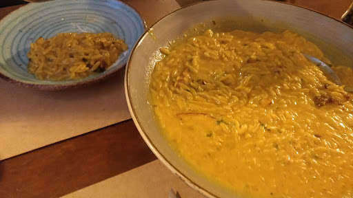 Die Atmosphäre können wir ebenfalls nur loben, weil hier im Gegensatz zu den benachbarten Restaurants endlich mal kein lautes Gedudel jedes Gespräch getötet hat. Man konnte sich wirklich unterhalten oder einfach nur still den...