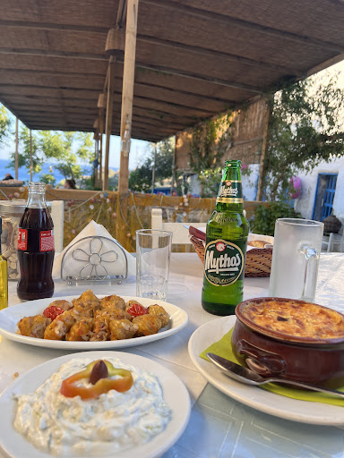 Read moreA grear tavern with a lovely terrasse shaded with trees, overlooking the sea and surrounding cliffs, fresh with a cool sea breeze. The owners are nice and very welcoming. The food is excellent and entirely home-made: some of the best dolmades we’ve had on the island, stuffed tomates and bell-peppers, okra in tomato sauce, fava, pork, lamb, etc. Really the best place to have a good warm meal, in an area that is little inhabited but beautiful, with some lovely creeks...