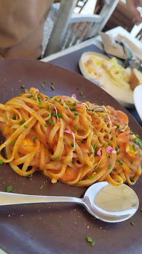 Late lunch a group of 4 Salad - bland with lettuce four ( honestly!) pieces of BURNT chicken and a pink mayo supermarket sauce which can be found even in a fast food place Pappardelle with ragu sauce - cold pasta with fatty meat Linguine with chicken - warm pasta ( three- four mouthfuls)AND overloaded with raw peppers and drenched in heavy cream Burgers - bread mostly with spices - no taste of meat By the way the menu mentions risotto.Well they do not serve it anymore but it’s still on the menu ! I must admit we did eat BUT only because we were starving !!! Bill 50€ yet when we went inside to pay the final bill was 51,90€, no explanation why and it was not a tip !!!!! We did mention that we did not enjoy our meal and wanted to explain YET they were not interested in knowing why therefore not interested in improving ! Regretted it NOT...