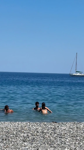 The beach bar features comfortable sunbeds, ideal for resting and sunbathing. The music selection contributes to creating a pleasant summer atmosphere, while the volume is maintained at reasonable levels, allowing visitors to enjoy both the music and their company.