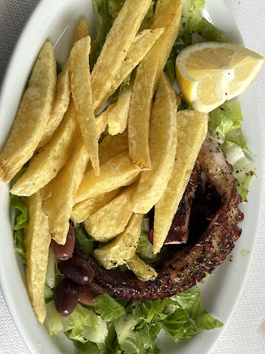 Nice family owned restaurant located at the premises of a nice villa. At our arrival we were greeted by the owner and from the very first moment on you feel here welcomed and appreciated. Attention to detail seems to come from the bottom of the heart of the owners. The villa and the terrace, where the restaurant is located are carefully furnished and decorated. Bunches of grapes hanging over the table give you a feeling as if you are being in a scenery from a classic painting. The same way, with attention to detail, was the food. For example, the Greek salad is served with spices on the side here, you can add as much of the oregano as you wish. Same applies to the amount of salt - the food comes very lightly salted. House wine (we tried white) was surprisingly tasty. Octopus was nicely grilled and not overcooked. Prices were to my opinion rather average. The portions are not too large, but not small either. I definitely recommend this restaurant if you want to enjoy nice local food and relax in the welcoming atmosphere of the authentic...
