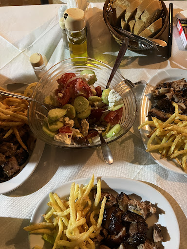Local taverna with great food. Highly recommend Kontosouvli - local pork speciality and the pork gyros. The french fries are fresh and not frozen as you usually find at the other restaurants. If I could I would give more...