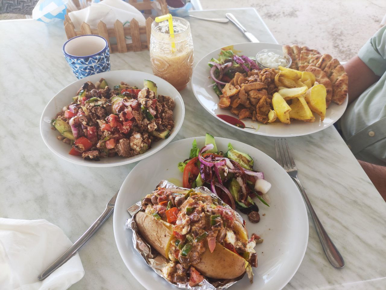 Can I give it 6 stars? We spent a week in Agios Georgios and every day we got at least one thing from XL. They put great care and attention into everything they do. Everything we tried is worth recommending: Cappuccino Smoothie Fried feta Bruschetta Summer salad Cretan salad Greek style jacket potato Rib-eye steak We also requested a salad of ingredients we wanted and they were happy to make it. Not only were the people super sweet, the food excellent, but they also have the best beach in all of Agios Georgios.We tried various areas of the seashore, and their beach had the best entry to the water with few rocks. They also have a pretty good shower/changing stall on the beach. You can order most of the food or cocktails from the beach and have them delivered directly to your beach chair and umbrella combo (free from the restaurant for customers). Stop reading this and visit...