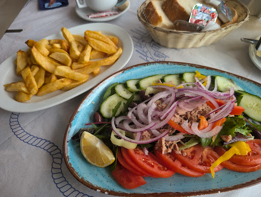 We went there two evenings in a row, without even thinking, that's how good it was! The first time we had the fish for two, we had to wait a little bit because it was Sunday evening and it was quite crowded and people just kept coming. But for us it was not a problem, especially when we saw the huge magnificently grilled sea bream with boiled vegetables coming. It was fantastic! The freshness, the taste, the grilling, everything exquisite. Deserts were also very nice, we had baclava and lemon pie. The second time we went for the shrimp saganaki first (which was one of the best I had in Greece), followed by fried squid and grilled swordfish (the owner invited my boyfriend inside to choose the fish he wanted first). Again, everything was amazing! Fresh, very well cooked, the squid was so tender and tasty, the fish delicious. It is a family business, so they care about their customers and what they put on the plate. We highly appreciated them and recommend their food! Also, the tavern is located in the harbour, so the location, atmosphere and surroundings are very pleasant...