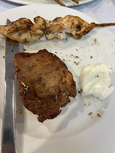 This place is one of that places you go once and definitely never again. We wanted to have a nice greek dinner so we were looking for a place to eat around the area. Manny places was already closed so we chose to try The Real Greek. We went there for dinner, I had to say that it was end of October so end of the season, but, this is not an excuse for what happened. From the beginning we were welcomed by the owner of the place, who seemed a nice man. Being at end of the season, he was also our waiter, so we asked him from the start: ,,do you have everything in the menu?” And his answer was ,,yes, off course”. All right: we ordered our drinks and he start being a bit pushy (thinking maybe we don’t want to buy something else)… we asked for a bit more time so we can read the menu. We ended up ordering the meze platter for one (as an appetizer) and the grill platter for two. We received the meze, wich was fine, even though some of the dipping were missing (without even telling us), anyway we eat it and waiting for the nice grill plater. In the meantime we heard a discussion at the table next to us that the lady who ordered lamb kleftiko received a nice dish, but no lamb in it, the owner said: ,,oh yeah, today no lamb, is with beef” …promising) We saw someone from the kitchen coming at the grill station and instead of starting the grill, putting something in the air fryer. We were shocked but didn’t said anything at the moment, thinking they maybe do another dish. The waiting for it was around 45 minutes. We received ,,the platter” and we were shocked, non of the things in there saw the grill, also seems so small (one burger patty cut in half etc)…we were hungry so we started eating when we found not one, but two pieces of hair on the pork chops… we let the pork away, which by the way was named ,,steak” by the owner… and we try to find the ribs: surprise, no ribs we took the menu and we realized that not just the ribs are missing. We didn’t had the sausage, we didn’t had the pancetta, no gyros, but we had some chicken breast (which wasn’t in the menu) so we went to the waiter (remember also the owner) and tell him that he might have made a mistake because that’s not what we ordered. We told him the things that are missing and he said ,,yes, I know you don’t have ribs I put you chicken instead” ,,ah, no pancetta, I know, but I give you the ,,steak” (which was a dry pork chop -see in photos-)” ,,no sausage and gyros? Oh, sorry mistake of the kitchen? I will tell them to give you the sausage, just wait” we were shocked. We came back to the table and started eating the chicken souvlaki which seem the most eatable thing, and surprise… we found another hair. That was the thing that make us say stop to this all mess. We showed him the hair, he took it and went to the kitchen… we told him we want to pay for the drinks and the meze and we want to go, we are not waiting anymore for the missing sausage and gyros, we had enough. His attitude completely changed in that moment: he stated saying that he was really nice to us and we need to pay the whole bill. By the way, that platter was 55€ (really big price for Greece and HUGE PRICE FOR WHAT WE GOT). He stat saying that we had the souvlaki and we eat the fries so we must pay for what we had. We didn’t want to make a huge circus in there so we said, alright, we will pay 25€ maximum for the ,,platter”, because we wanted to leave that place as soon as possible. He insisted to give us the gyros and one sausage in a to go box… so we took it to give it to the cats. The total was 46€ (2 Fanta lemon, one meze platter and almost half price for the big fail platter). Off course the POS wasn’t working so we payed next street (as he told us) at the Travell agency which was also his place. Horrible experience. Huge and unjustified prices. Awful food and really bad atmosphere. If you want some good food and nice service go far far away from this...