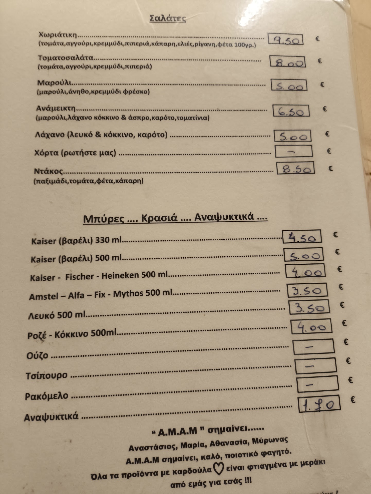 Τα φαγητά πολυ ωραια και γευστικά ΑΛΛΑ δυστυχώς με ολα τα υπόλοιπα που γίνανε στο τραπέζι μας δυστυχώς 1/5. Μερικες φορές η Ευγένεια δεν αρκεί για να ειναι ενα εστιατόριο σωστό.Να σημειωθεί οτι το κατάστημα παραδέχτηκε τα λάθη του ΑΛΛΑ παλι δεν αρκεί κατανοώντας παντα οτι υπάρχουν και δύσκολες ημέρες. Ας αρχίσουμε με το MENU το οποίο ήταν λάθος(το μενού αναγράφει 4 σουβλάκια στην μερίδα) οι μερίδες που παραγγείλαμε ήρθαν με 3 και ρωτήσαμε γιατι 3 και μας ειπαν οτι ειναι λαθος στον κατάλογο . Η μια μερίδα ηρθε με 2 σουβλάκια και ειπαν θα μας φέρνανε το αλλο μετα το οποίο δεν ηρθε ποτε. Αρκετα πράγματα απο τον κατάλογο δεν υπήρχαν(συμβαίνει). Ζητάμε λευκό κρασί, μας λενε εχουμε μόνο κόκκινο. Παίρνουμε ενα κόκκινο. Μετα απο μιση ωρα ζητάμε ένα δεύτερο κόκκινο( οι σερβιτόροι άφαντοι ). Έρχεται σερβιτόρος με λευκό(???) λεμε κόκκινο ζητήσαμε. Ηρθε ο σερβιτόρος έπειτα απο λιγο και μας λεει οτι δεν έχουμε αλλο κόκκινο και σας φέραμε λευκό(το πηραν πισω διότι δεν το θέλουμε). Έντομεταξυ όταν ήρθαν οι μερίδες ζητήσαμε ακομα μια η οποία δεν ήρθε ποτέ. Το POS δεν δουλεύε. Οταν ηρθε το κρασί έφεραν 2 ποτήρια σε παρεα 6 ατόμων. Το αποκορύφωμα ηταν στο κόματι του λογαριασμού. Ζητήσαμε τον λογαριασμό. Ηρθε ο σερβιτόρος και μας είπε "είμαστε 59€". Ζητησα την απόδειξη αναλυτικά για να δω τι χρεώθηκαμε και ως καταναλωτής οφείλω να την παραλάβω. Ηρθε η απόδειξη έπειτα απο 10 λεπτά με το πόσο των 62,20€. Κάθισα και υπολόγισα και μου έβγαινε το ποσό 44€ πήγα στο ταμείο και έκατσα αναλυτικά να πω τι πηραμε και γιατι βγήκε απόδειξη των 62€. Το ταμείο παραδέχτηκε το λάθος του εφόσον ειχε χρεώσει προϊόντα ακομα και με λαθος τιμές αναψυκτικά αντι για 1.70€ με 2.50€. Να σημειωθεί οτι η ωρα ηταν 22:00 και το μαγαζι ειχε 3 κατειλημμένα τραπεζια οποτε δεν μπορει να θεωρηθεί ουτε αργά ουτε μεγάλη πληρότητα. Λοιπόν αγαπητέ ιδιοκτήτη θελω να μπεις λιγο στην θέση του πελάτη και να δείς πόσο άσχημα φαίνεται αυτη η εικόνα για το μαγαζι. Και σαν ένα μικρο tip, έχε το νου σου στις απαντήσεις στις αξιολογήσεις - ειναι δημόσιες. Ειναι κριμα να βλέπω ανάλυση για το πόσα σουβλάκια βγαζει μια γατα......... Με λίγα λόγια μια...