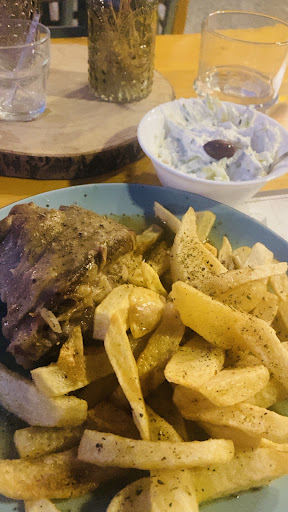 Read moreThis restaurant was recommended by the people in the lower apartment. It was an 8 min. walk from Dia’s. I ordered a Greek salad, no onions, and it was HUGE! And delicious with a giant piece of feta on top. I also ordered a Burger and potatoes, and it was HUGE, so well cooked, juicy - I could only eat 1/2 of it. I also ordered a mousaka to take out for dinner, so I didn’t have to walk around at night. Can’t wait to taste it. The service was perfect, the restaurant was very non-busy at 2 pm. My eating times are off from the time change. I enjoyed a lovely glass of white wine blend, and they brought out a small ice cream - caramel flavor, I think for dessert. The chef/owner (?) was very pleasant...