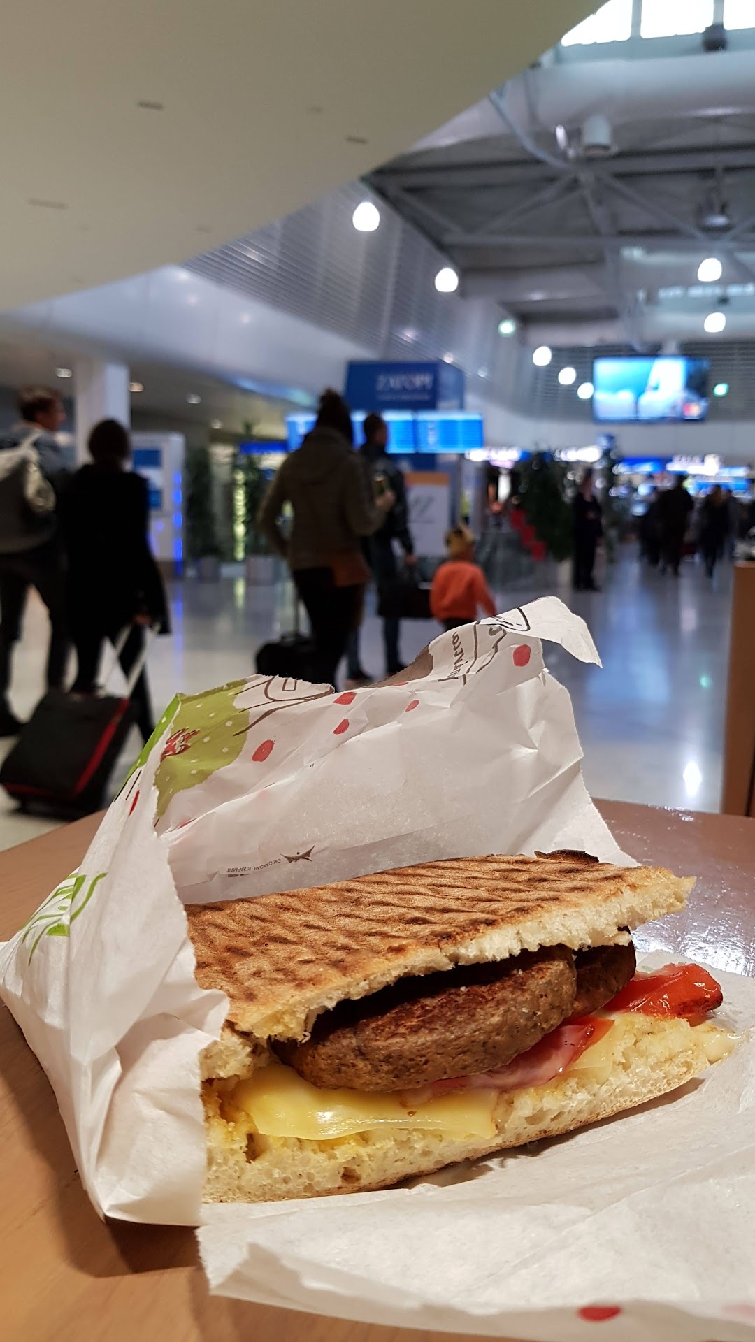 Poorly organized at extortionate prices. Line took 20 minutes because two kiosks are set up for four restaurants, and they are not equipped to handle large volumes of people expected at an international airport. There is no menu, all the food is locked in a lukewarm case facing away from the line, with tiny signs crowded together so you must either commit to memory what you want ahead of time, or run around the counter when it’s your turn to quickly locate (hopefully, correctly) your order. There is no oven to heat your food, so it is served at room temperature. In order to pick up your coffee you have to slip between the two 50+person queues and hopefully communicate what it is you ordered. For this experience you pay 15 euro and sit at tiny tables covered in leftover garbage under fluorescent lamps because there is nowhere else to sit and nowhere left to order that doesn’t also have a 20 minute queue. This was the only time during my two weeks in Greece I felt ripped off. Five star country, one star...
