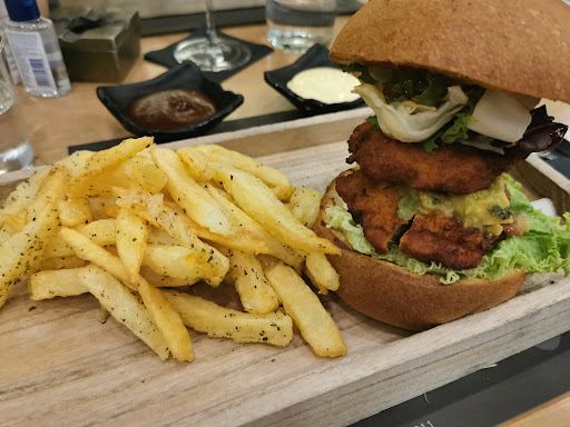 Service was extremely slow and inattentive. We’re pretty easy going when it comes to restaurant service. After ordering one drink and one meal each (2 people), we waited over 30 minutes for our drinks to arrive and food arrived 1 minute later. We typically like to sip on our drinks while we wait for food to arrive. So that was a bit disappointing, and put a buzz kill on our otherwise fun night out.