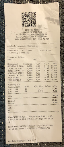 Read moreVENETIS is a bakery with chain branches that opened in Athens in 1948 and has grown by producing delicious products ever since. They have branches in different parts of Greece, most of them in Athens. Their branches are in different concepts and they offer products from wood ovens in their 1948 concept branches.