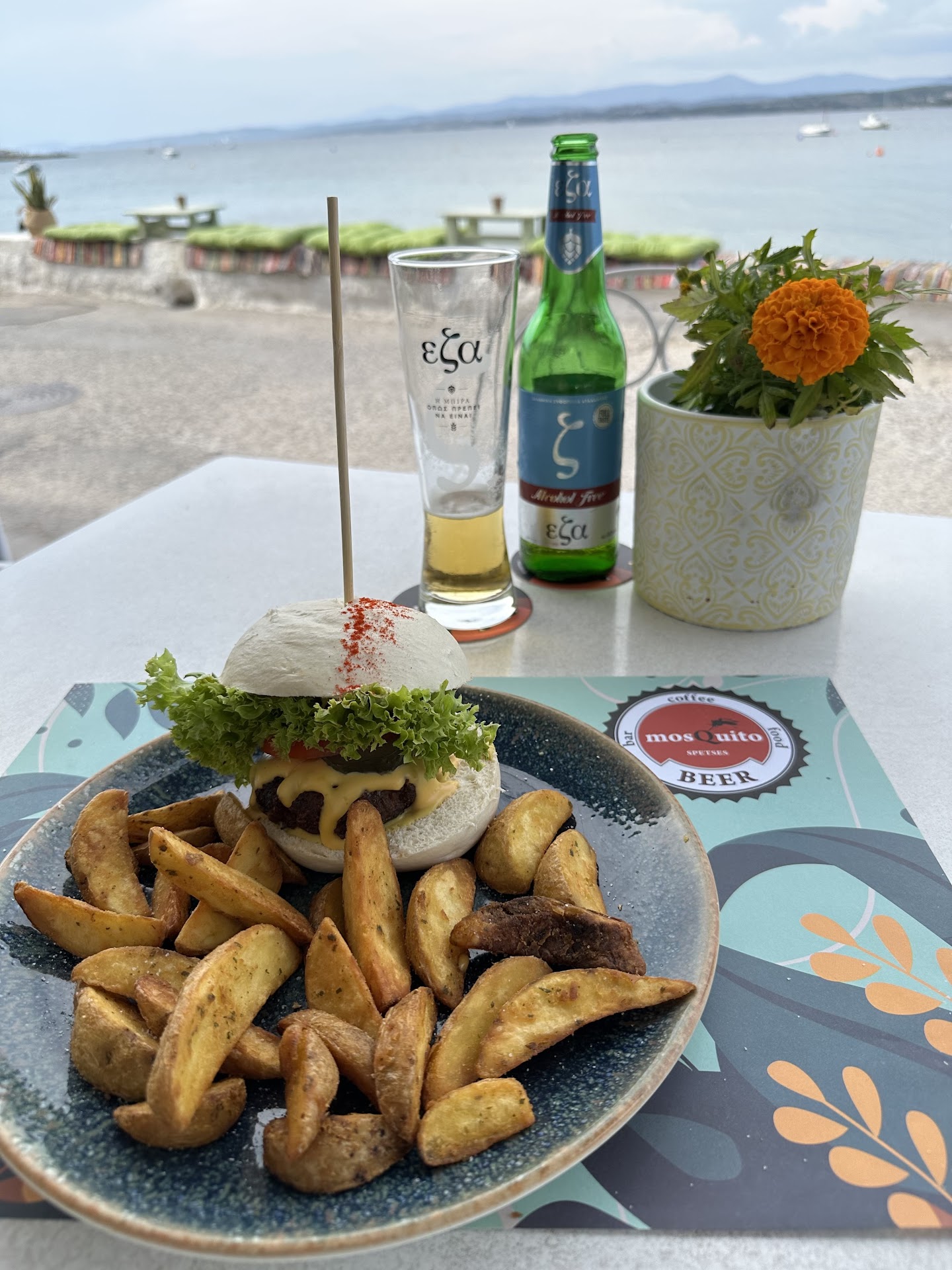 I ordered a non-alcoholic beer 🍺because I have been sober 5 months now but had the urge to have a beer and burger by the sea…