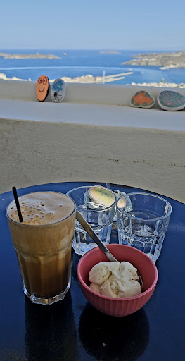 Read moreWalking from Syros port up to St. George church, it was so hot and we are so thirsty. It was like we found a heavenly oasis. The owner/staff so nice, greeted us with cold water, like he knows that we are so so thirsty ans it is not just only that he very kind and friendly. Too bad we are not very hungry so we had frappe and ice cream which are very good. I would come here everyday if I could for the view, the atmosphere, the friendly people...