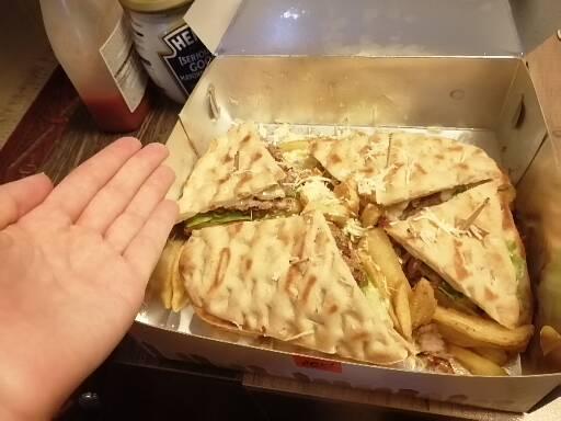 Είχαμε να πάμε ένα χρόνο σίγουρα γιατί είχαμε απογοητευτεί απο την ποιότητα την ποσότητα και την εξυπηρέτηση. Πριν μία εβδομάδα όμως πήγαμε και πήραμε μία σκεπαστή 7,50 € είπαμε να ξανά δοκιμάσουμε. Χαριτολογώντας όταν το πήρα τους είπα ότι πιστεύω να βρω μέσα γύρο. Έχοντας την τελευταία φορά στο μυαλό μου. Απο τα τέσσερα τρίγωνα τα τρία είχαν μία τσιμπιά γύρο στο τέταρτο δύο κομματάκια στην κυριολεξία τόσα δα μία φέτα ντομάτα και μαρούλι. Πατάτες 15 μετρημένες και όχι φυσικά όλες μεγάλες. Και απο γεύση χάλια. Φυσικά και διαμαρτυρήθηκε η γυναίκα μου εκνευρίστικε πολύ γιατί τα παιδιά μας περίμεναν να φάνε αυτό που πληρώσαμε. Το πήγε εκεί μπροστά τους όπως ήτανε δεν ξέρω ποιος ήταν αυτός που έβαλε γάντια να το ανοίξει μέσα στο στιλάκι και την ειρωνεία για να δεί αν του λέμε αλήθεια θαρρείς και υπήρχε περίπτωση να του λέμε ψέματα θαρρείς και είμαστε τζαμπατζήδες για να μην πω τίποτα άλλο. Το είδε ότι ήτανε άδειο μέσα και μας είπε ότι δεν απλώθηκε καλά αυτό που δεν είχε δηλαδή. Ήξερε πολύ καλά ότι είχε άδικο. Ούτε ένα συγνώμη δεν είπε. Ντροπή και πολύ θράσος. Δεν υπάρχει ποτέ ξανά περίπτωση να πάμε φυσικά και δεν το προτείνουμε με τίποτα. Η καλύτερη διαφήμιση είναι ο πελάτης μην το ξεχνάτε αυτό. Καλύτερα να τα πετούσα τα λεφτά μου. Το έβγαλα φωτογραφία δεν ξέρω αν καταφέρω να...
