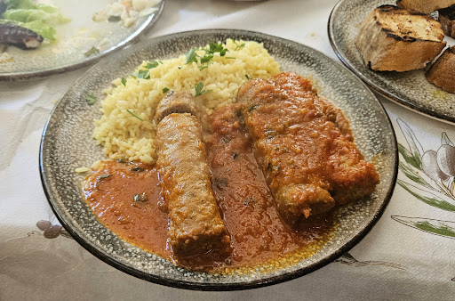 Bry disappointing experience. The bread was very dry en hard. We had the grilled fish which was grilled maybe the day before (if not earlier) and complete with potatoes heated up for service. Very chewy and no flavour... The grilled stuffed peppers same story, nothing tasted fresh at all... And everything was at the table within 5 min so I guess that says enough...