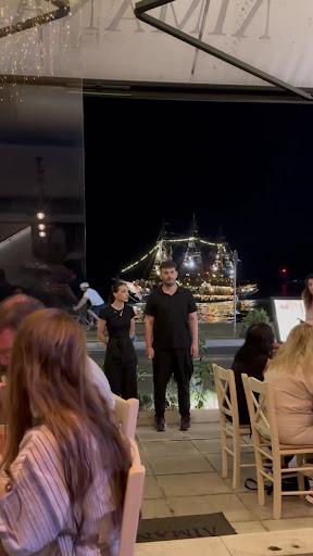 There was a cozy table, live Greek music, and an authentic, warm atmosphere — just like we imagined. After the main course, the musicians started playing and sang happy birthday to David by name, and the waiter brought out a dessert with a candle. The whole staff joined the celebration!