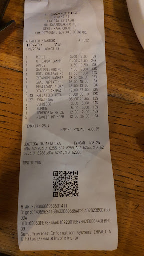 The food which I can recommend you to try are the lobster 🦞 , Magiatiko (Seriola) fish 🐟, Sinagrida fish 🐟 , the octopus 🐙 they are a MUST - very delicious and fresh - you can choose the fishesh by yourself on a cold display case! For a starter I like very much all the variations of their eggplant 🍆 and for a dessert 🍨 the Gelato is amazing the the Milföy - it is the best! 👌🏽🥂 I hope everyone who read this to find my information helpful for their choices. Enjoy the food! 😊